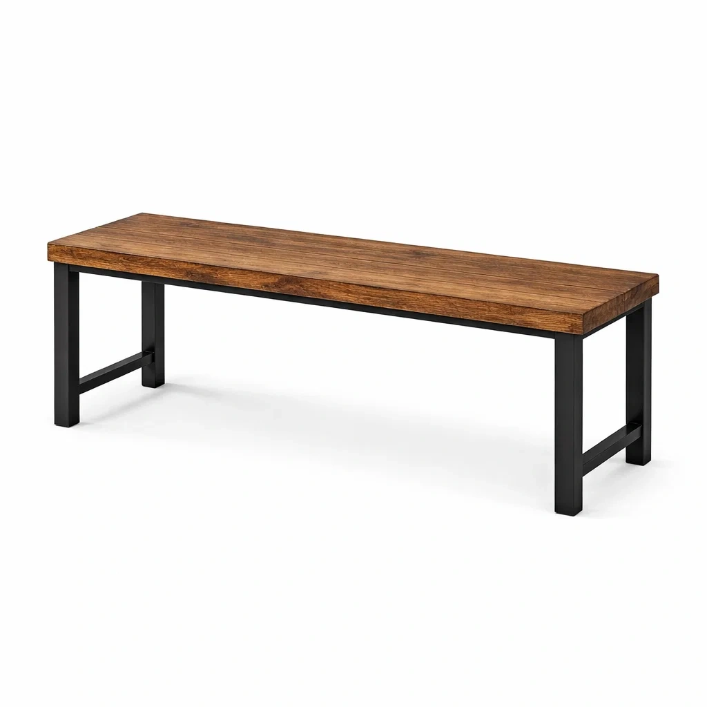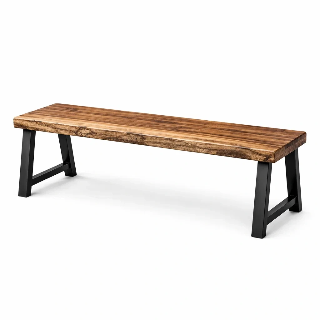 Bank Massivholz Schwarz Metallrahmen 110x30x45 cm