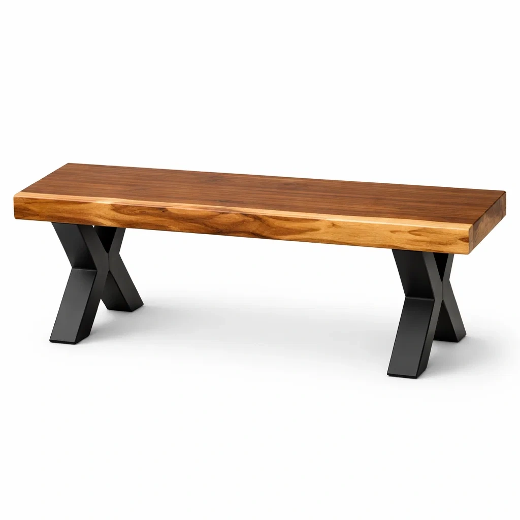 Bank Akazienholz Metallgestell Braun Schwarz